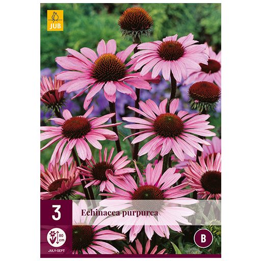 Echinaceo purpureo imenujejo tudi konusasti cvet. Echinacea purpurea poleti prinaša izrazite cvetove. Izstopajo po velikosti in barvi: kombinacija oranžno-rjega jedra, obkroženega s kontrastnimi rožnatimi lističi. Ta cvet ima dekorativno vrednost tudi potem, ko je cvetenje končano in se rožnati lističi ohlapno povesijo. Dodatna privlačnost je, da se med cvetenjem tu giblje veliko vrst čebel in metuljev. Višina je 70–80 cm. Ehinaceja se lepo razvija na sončnih legah in v rodovitni, ne pretirano vlažni zemlji. Vsako jesen tej rastlini dodajte 3–4 cm kompostne plasti, da se ji ni treba premočno boriti z drugimi vrstami za hranila.