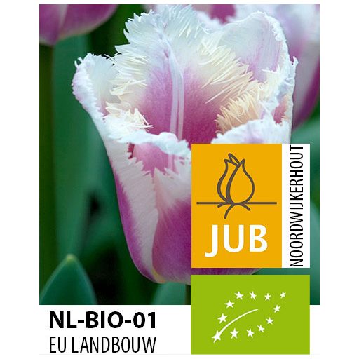 Razcefran rožnato-bel tulipan. Odlična vrtna rastlina, primerna tudi za sajenje v lonce. Lepo izgleda poleg drugih razcefranih tulipanov. Ekološko pridelan.
