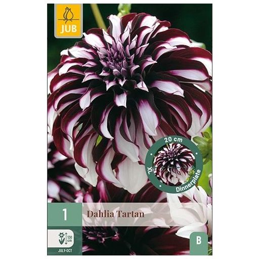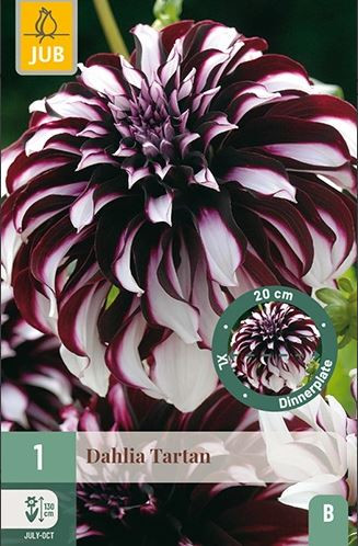 Velikocvetna, krožnikasta dalija 'Tartan' je donosna poletna cvetlica, ki vam bo prinašala veselje mesecih. Dalija 'Tartan' cveti z velikimi cvetovi skozi celo poletje, od julija do prvih pozeb. Dalija 'Tartan' zraste do 120–130 cm. Morda bo treba podpreti cvetne peclje. Gomolje dalije lahko posadimo tudi spomladi. Dalija 'Tartan' je občutljiva na mraz, pazimo na pozne pozebe.