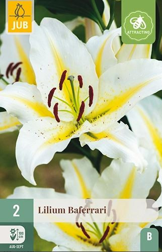 Beli in rumeni vzhodni lijak 'Baferrari' je čudovita vrtna in rezana roža. Zraste do 110 cm. Lijake najbolje pridejo do izraza v grozdih med trajnicami in grmi.