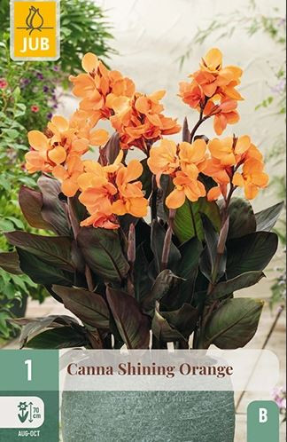 Canna 'Shining Orange' daje vaši terasi ali balkonu tropski videz. Ta sorta prinaša oranžne cvetove, ki čudovito kontrastirajo s temnim listjem. Canna izvira iz tropskih predelov, zato ima rada sončno lego.