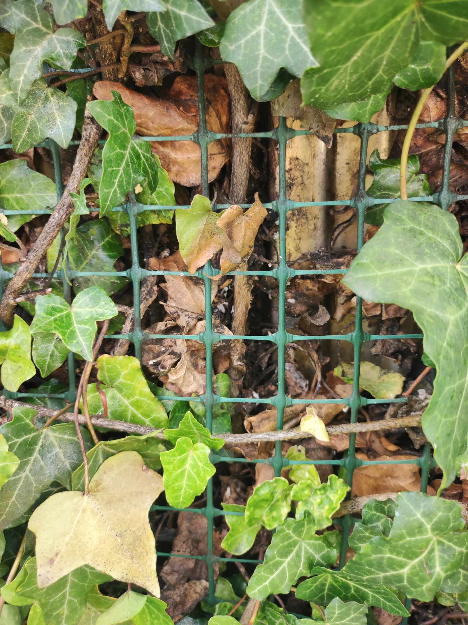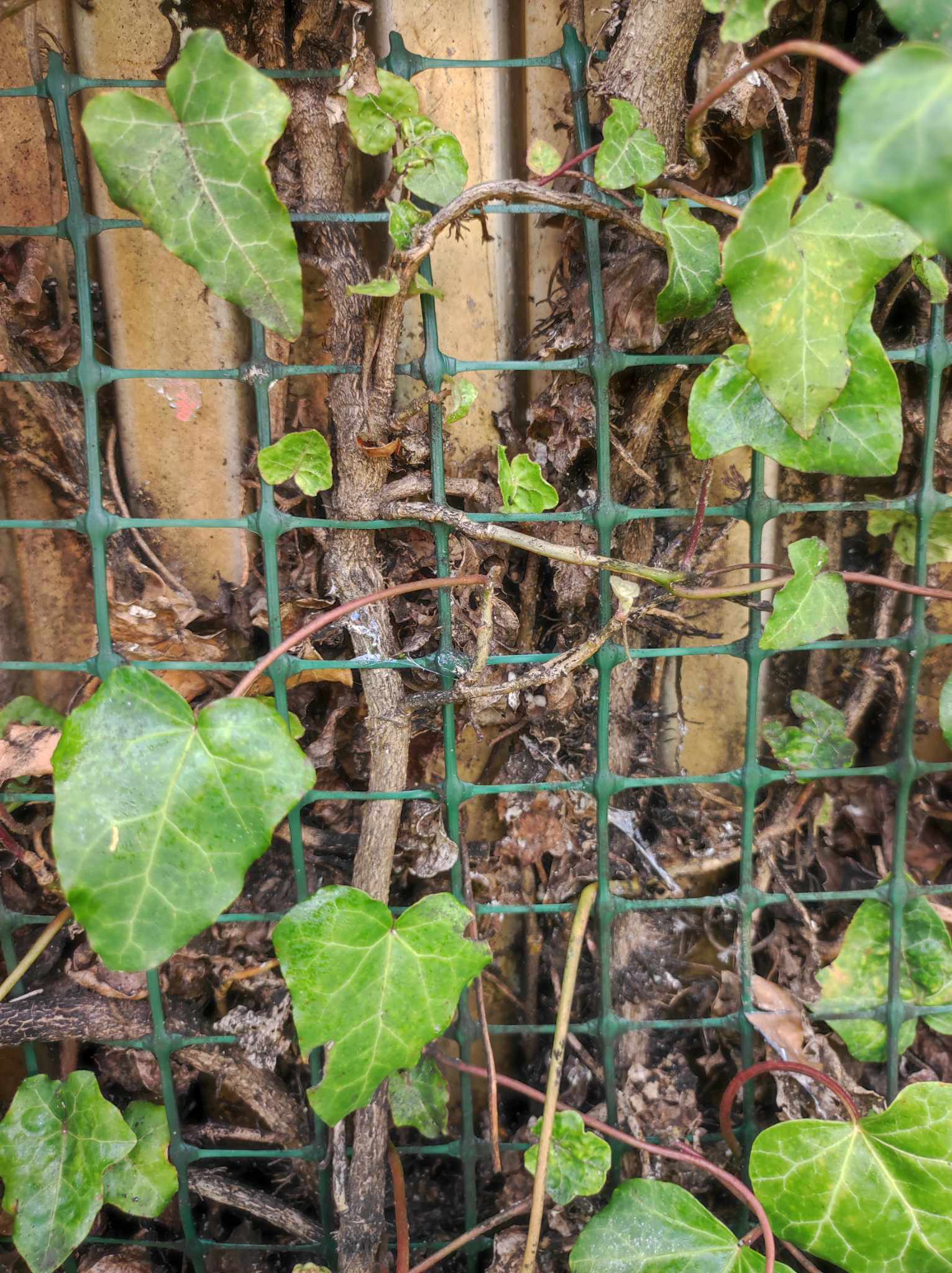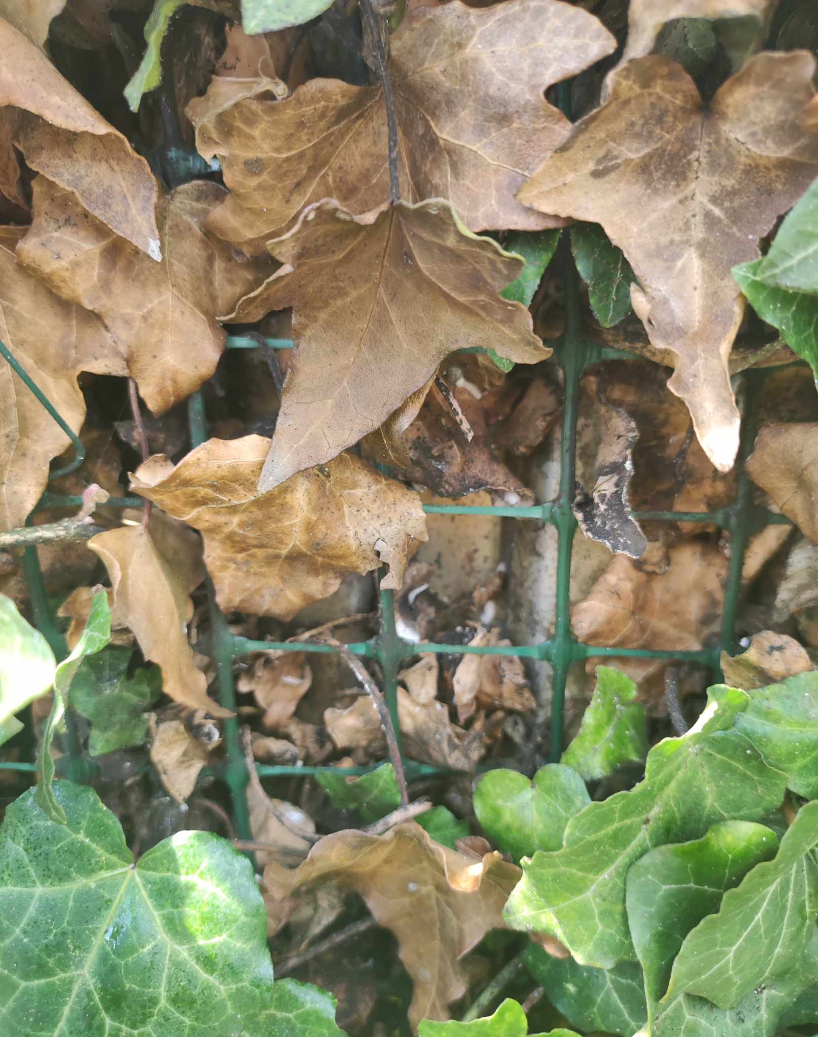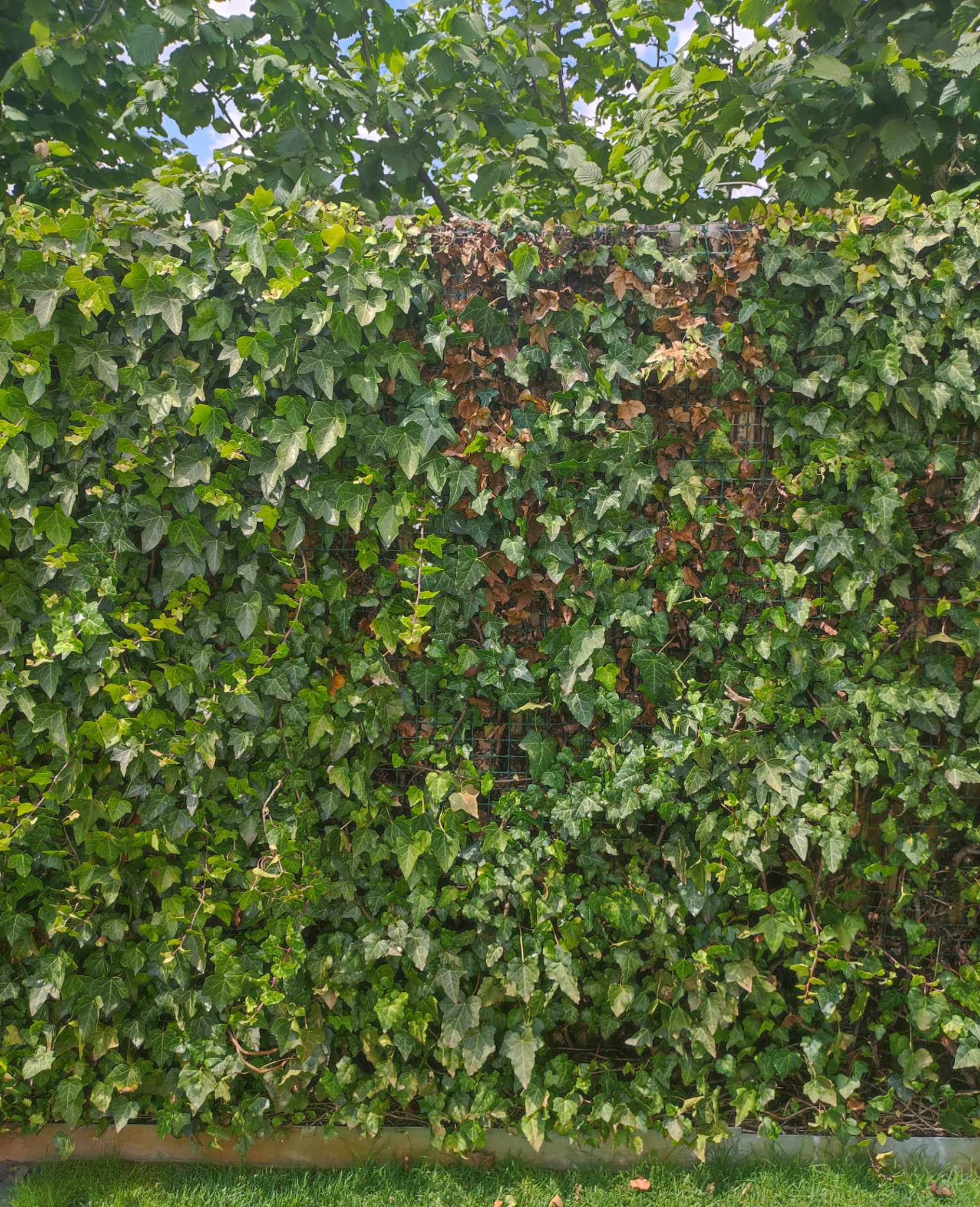 A kerítésre futtatott borostyán falunk sajnos beteg lett, fokozatosan halnak el az ágak :(