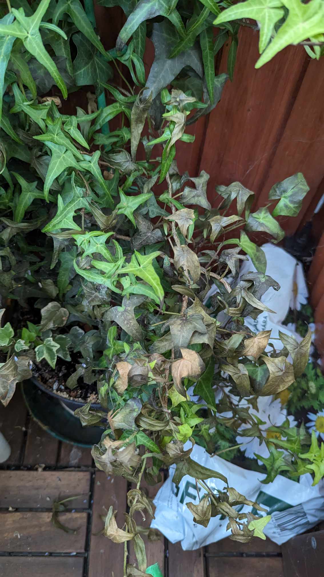 Tápanyaghiány. A borostyán bár igénytelennek tartják, tápanyagban és humuszban gazdag, üde talajt szeret. Mindig takarja a tövét komposzttal.