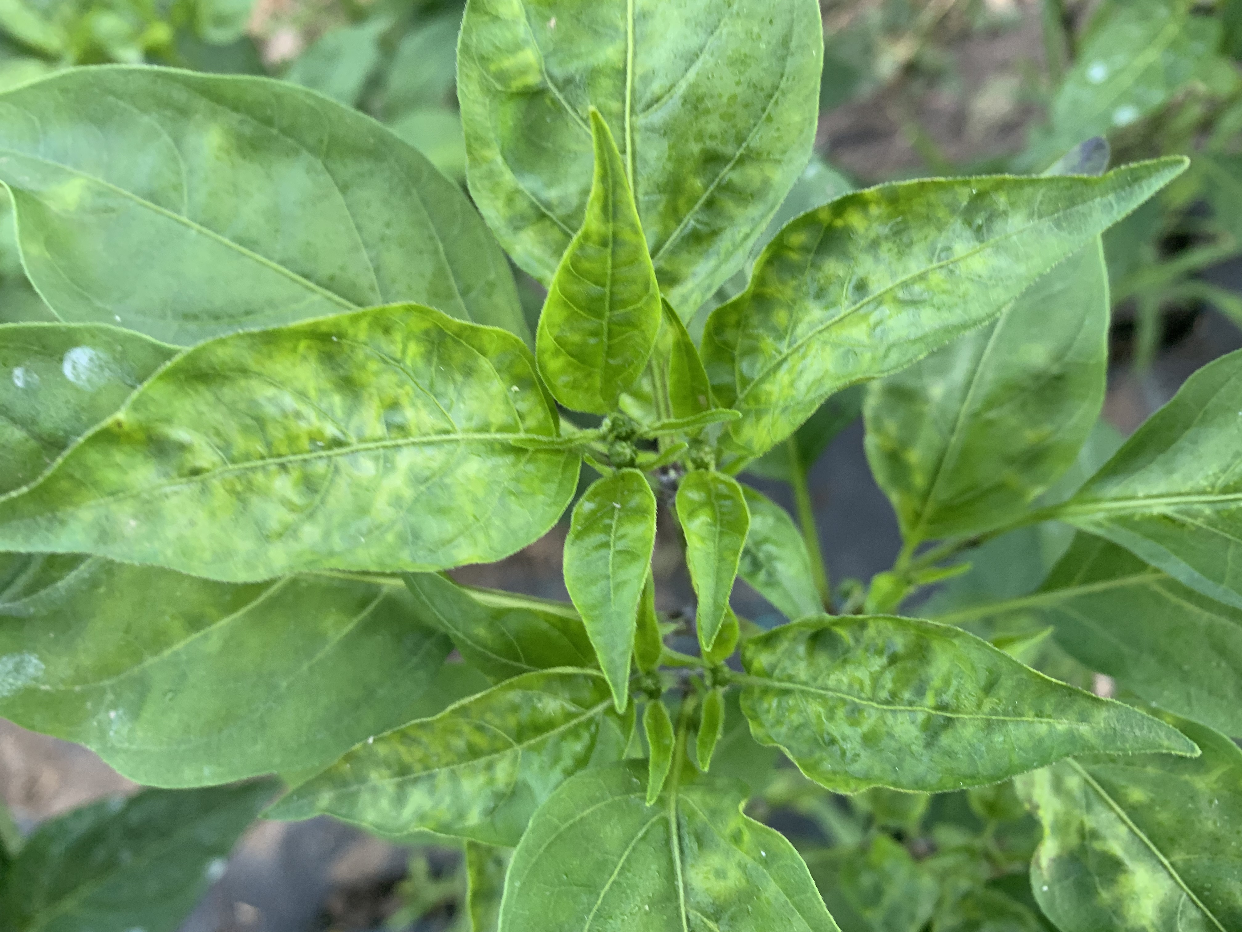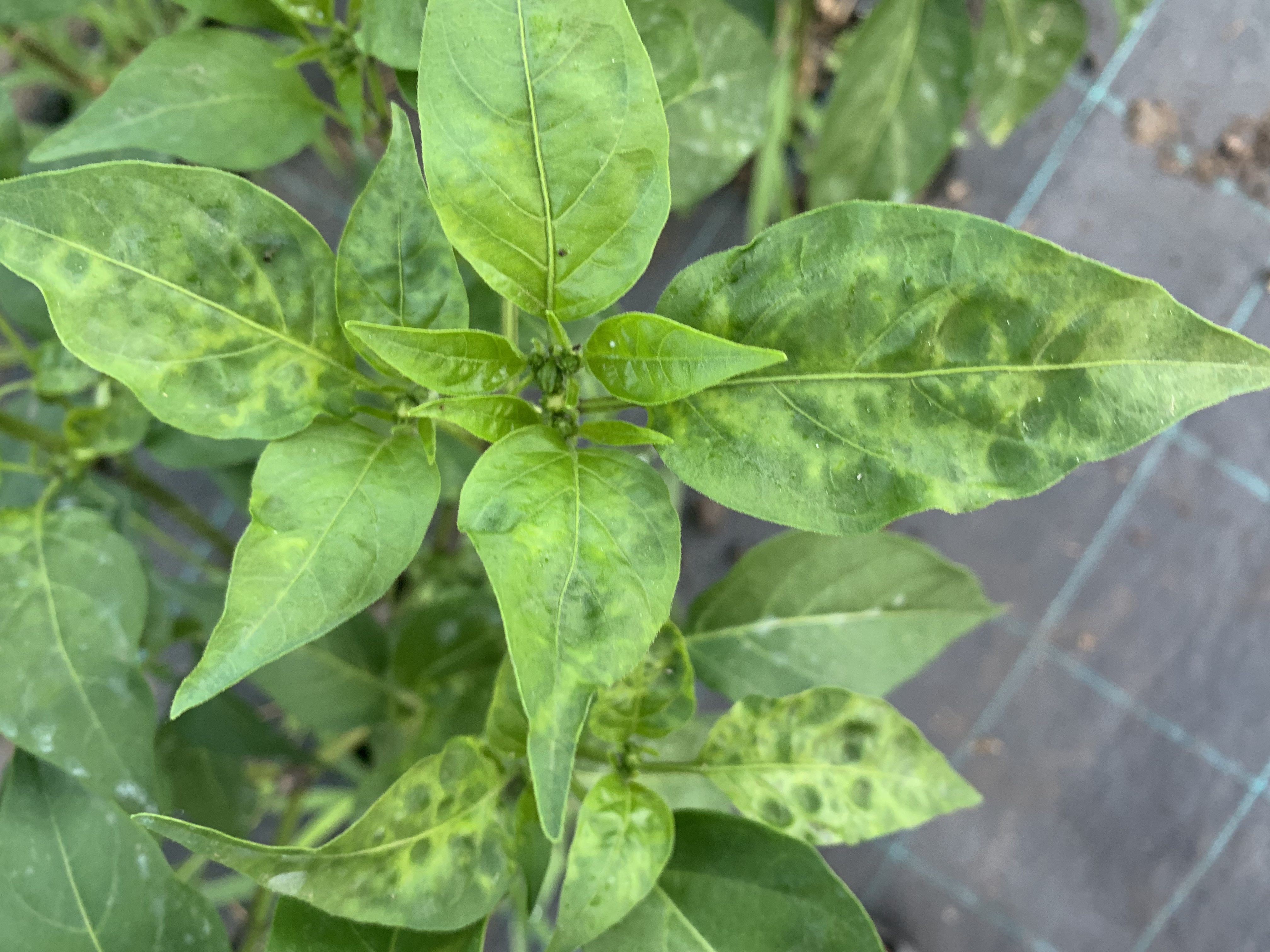 Egyik napról a másikra ilyen foltosodás jelent meg a jalapeno paprikáim levelein. A kérdésem az lenne, hogy mi lehet a probléma, és mit ajánlana ellene?