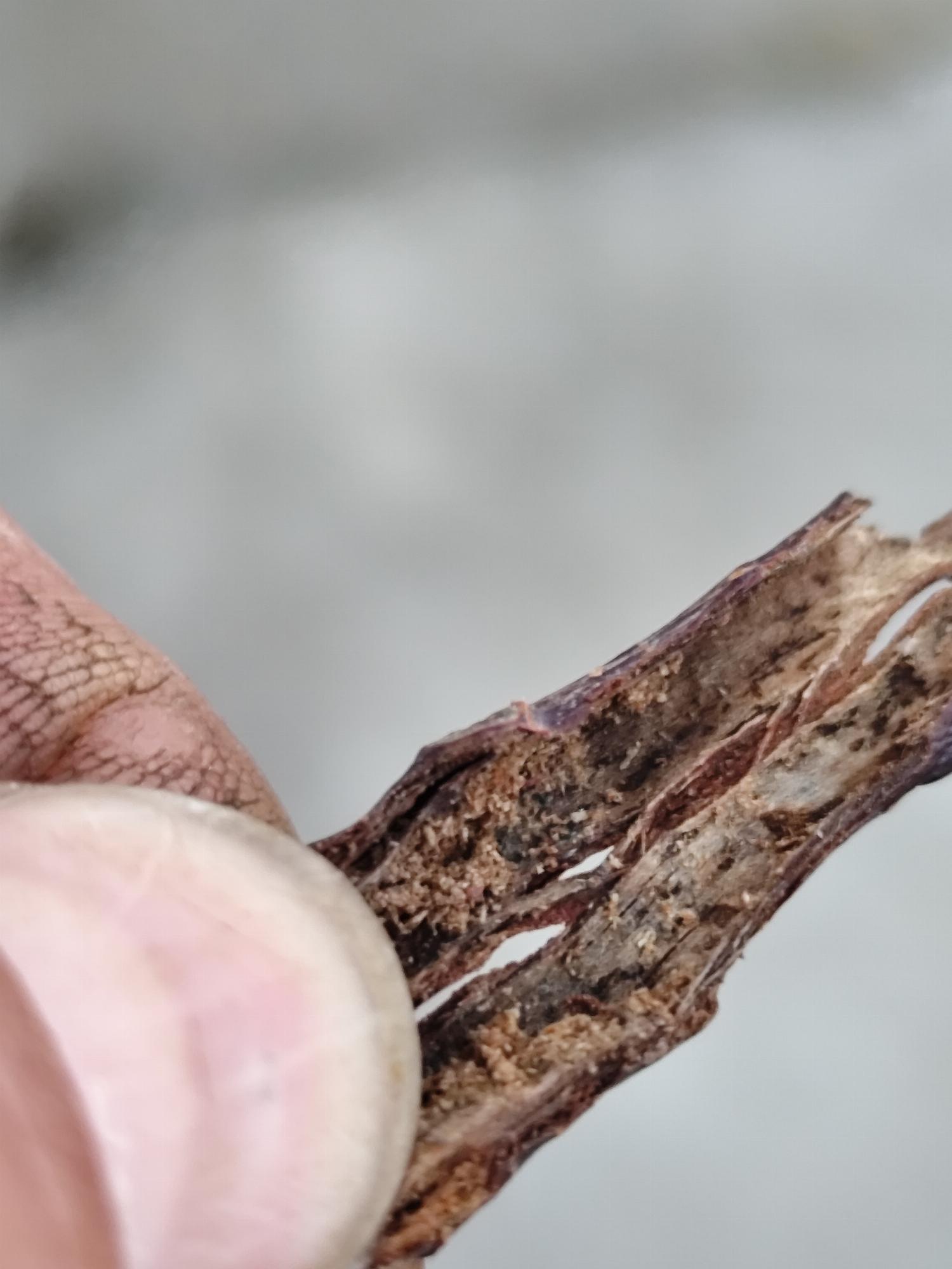 Mikroszkóppal megnézték a már elhalt leveleket és azokon voltak gombás foltok, de az ágmetszetekben nem találtunk barna gyűrűket. Nincs ennyire egyértelmű jele a betegség okának