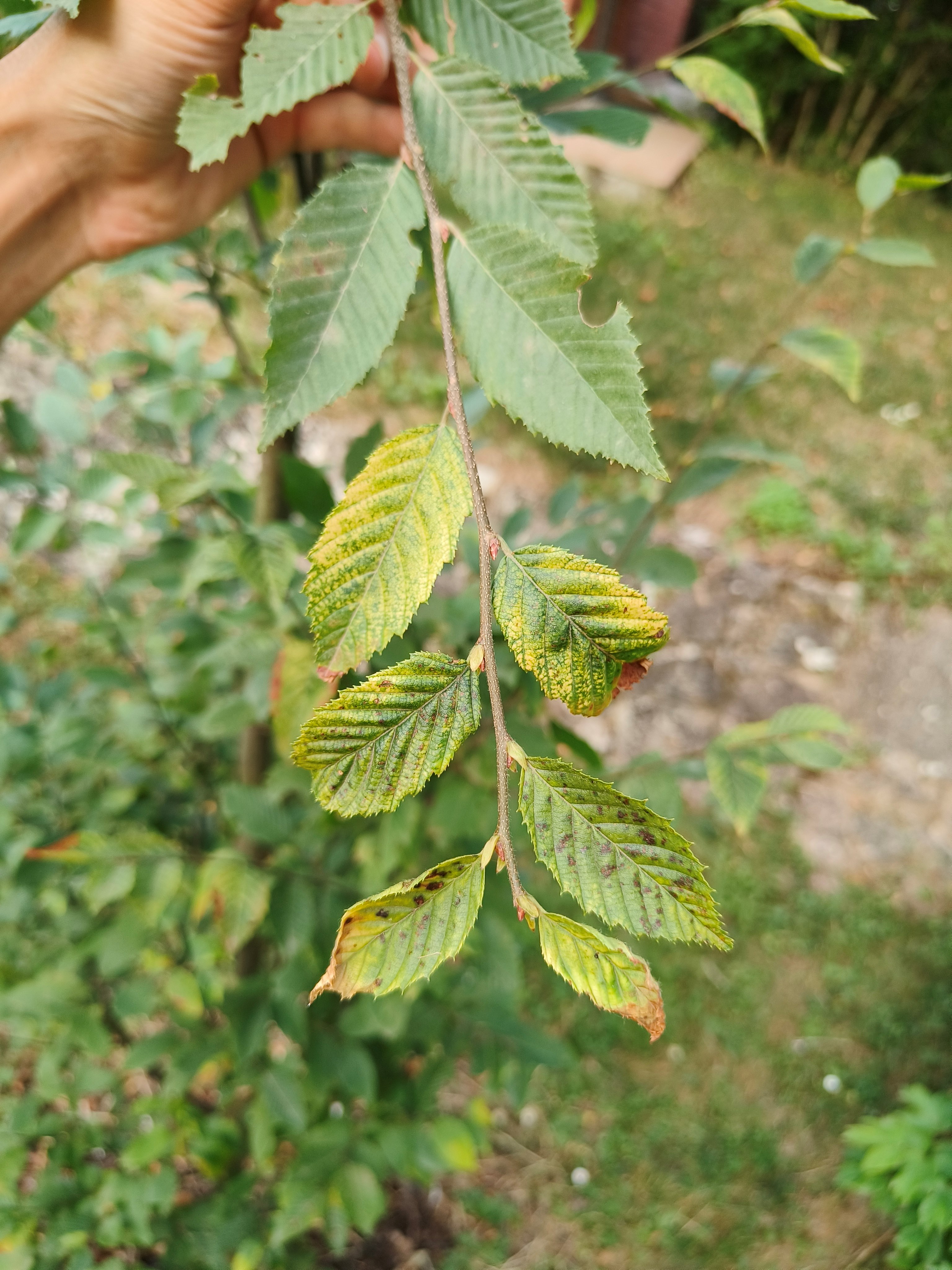 Tavaly ősszel ültetett oszlopos gyertyán fám vergődik, egyre rosszabb állapotban van. Csatolt képek alapján tudnának javasolni teendőket? Szeretnék javítani az állapotán.