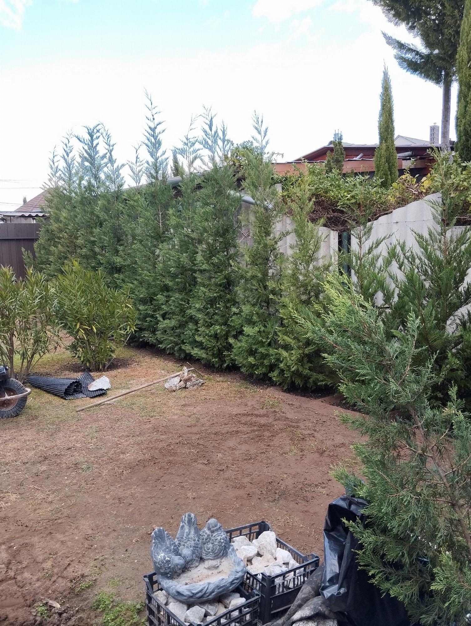 A teraszom mellé egy leylandi ciprust ületettem 2021. novemberében. Gyors növekedés, a szomszéd takarasa volt a cél.